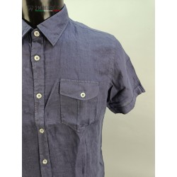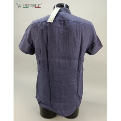 Short Sleeve Shirt BLOOKER Night Blue Slim Casual Fit Top Quality 100% Linen