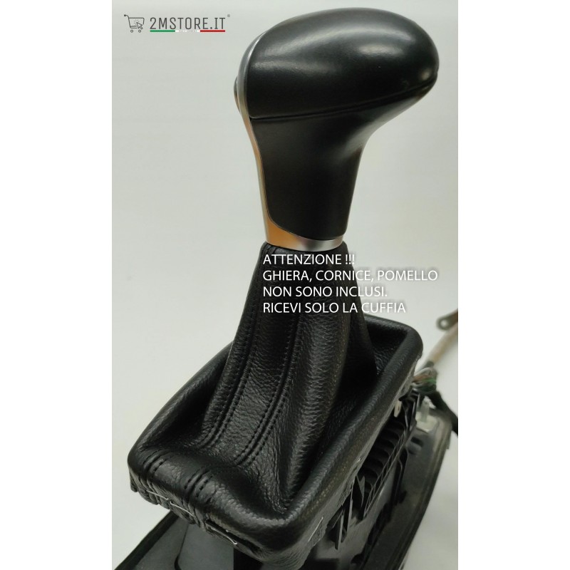 Automatic gear lever gaiter in black genuine leather with black stitching