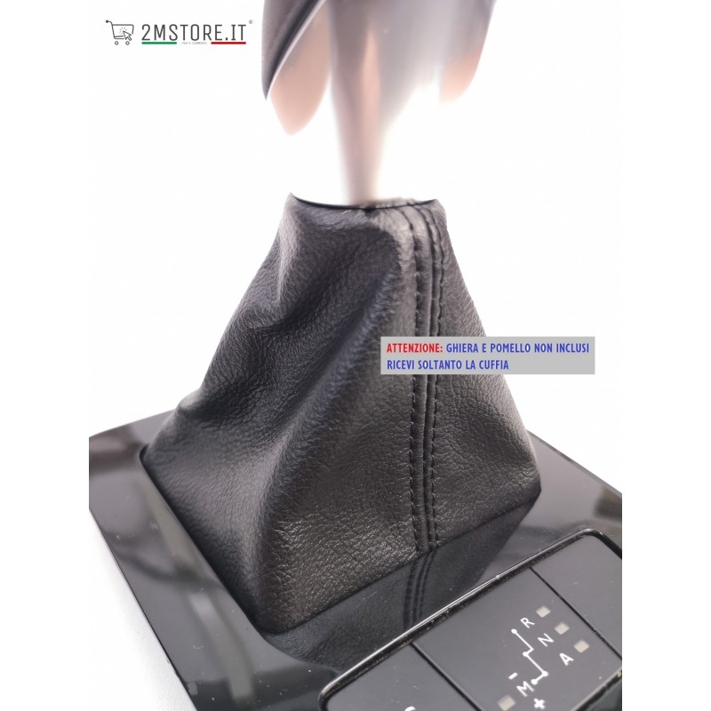 Cuffia leva cambio automatico in vera pelle colore nero con cuciture nere